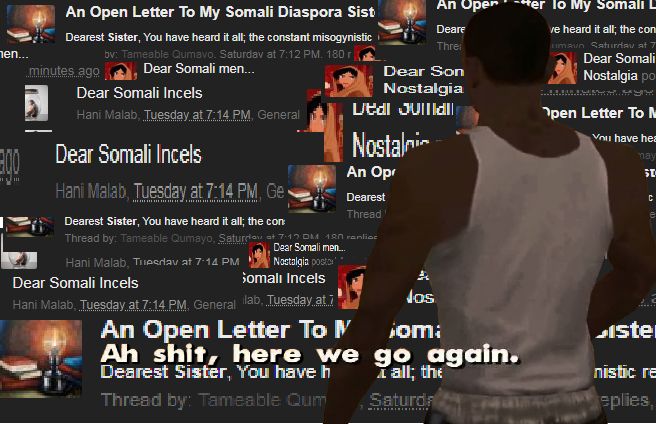 But, I can understand. Many young guys find it easier to chat up non-somali girls because those girl's standards are low. You get laid the following wednesday when you meet her on Monday. They even made a song about it long ago. By Craig David