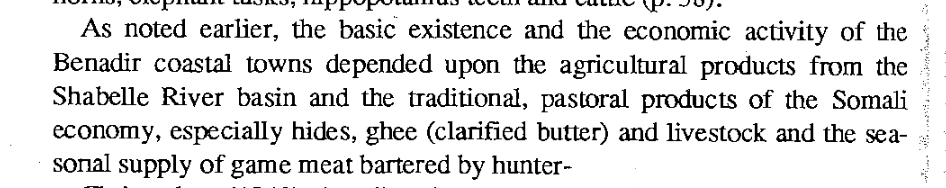 The Tunni not only formed a bulk of the inhabitants they were also sedentary agro-pastoral farmers living in villages on the country side, that was supplying the town food to sustain it and other products. Which just shows that the towns were just commercial outlet for interior Somali production and the inhabitants just acted as middle men.