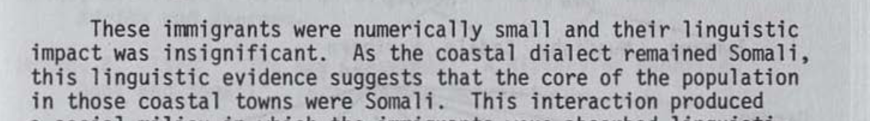 The southern coastal Somali dialects are big proof they that they were majority inhabited by Somalis at a very early date.