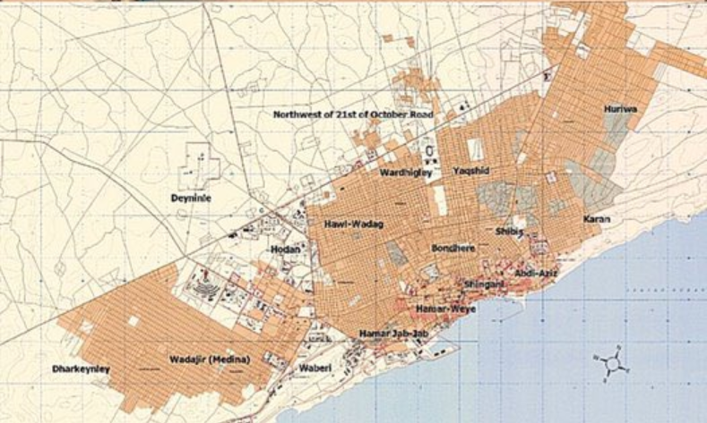 City map under Kacaan government: The government even repaired old districts that the Italians bulldozed.