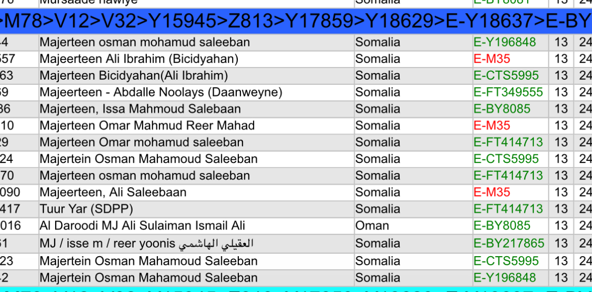 You're E-V32 like all other MJs.which qabiil has e-m5021 the most? balkans aside, is it prevalent in other clans or horn africans tribes