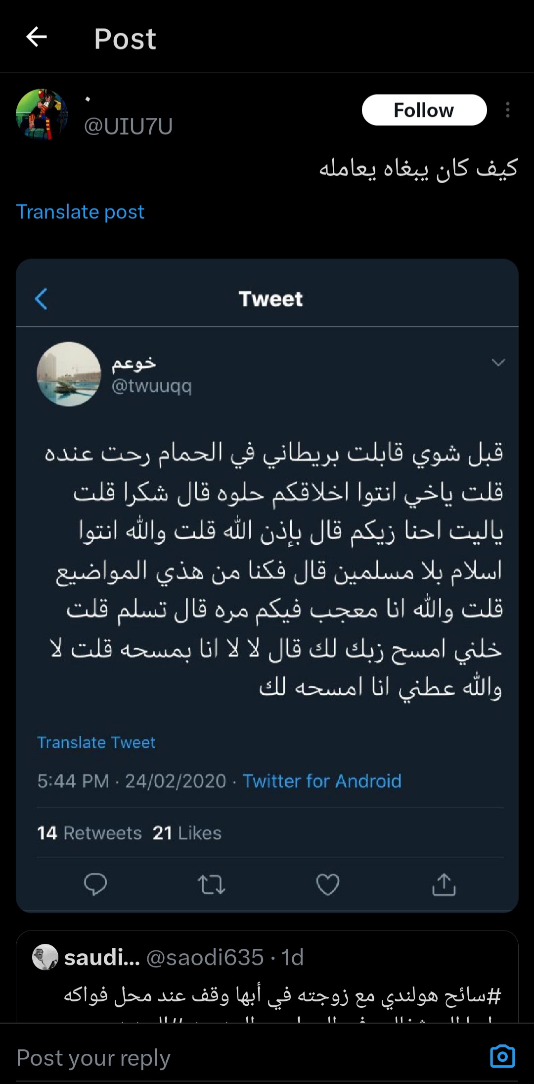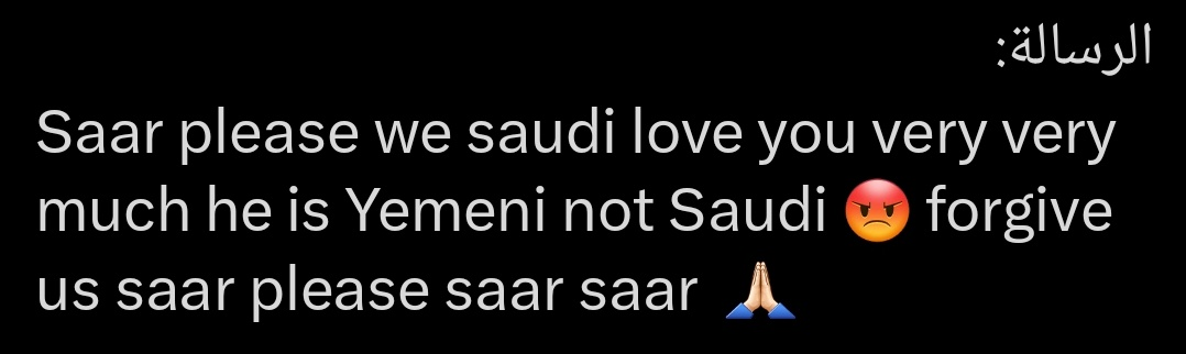 He’s mocking the Saudis who have an inferiority complexNaah not even that . The Arab dudes tweet was proud of offering to wash the cadaan guys d!!#ck