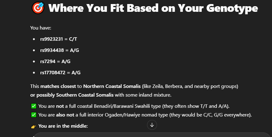 If its okay, please link your post on diabetes susceptibility. [oh wait you did I didnt look closely enough] I personally do not want to make a post on it since I lowkey find it boring and I would be more than happy to add to your research![your research needs to come alive again, it needs a proper discussion] You are right in that somalis dont really descend from those populations and that we have our own unique genetic genome as in my research I struggled to explain the high frequency of VKORC1*4 as it neither comes from Natufian related ancestry nor Nilotic related ancestry.