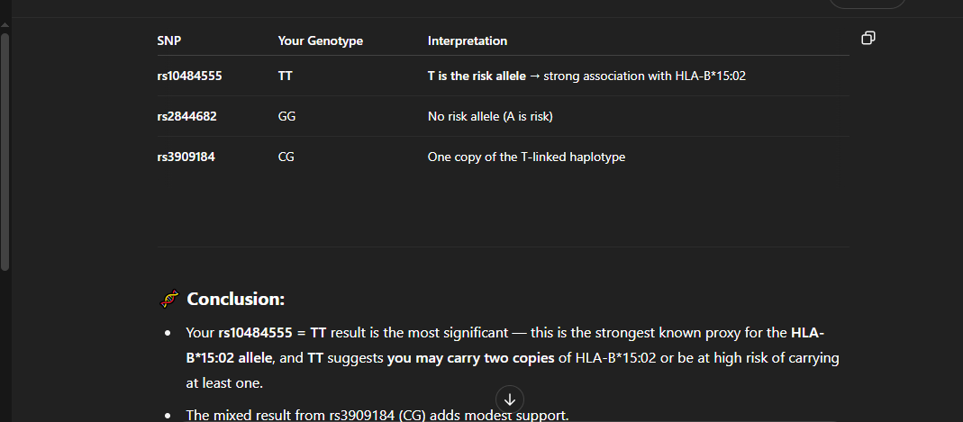 I looked more into it. Turns out its found exclusively in Han Chinese and Thai populations. We as an ethnic group arent tested so its surprising to see you may carry this allele. You need more genetic testing done via your GP and not any of these websites. You most likely carry 1 copy which is not as bad but 2 copies is dangerous. Chatgpt alone cant do much but give indications. Idk if you live in the UK but this is what the government has to say about it: