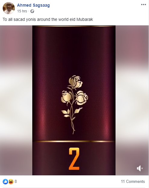 Loool well well not surprised from older folks but younger folks doing this is a true shockerSomalis are giving out Eid Mubarak greetings on sub clan level now.He is the brother of a famous singer from Sland region called Cabdale Sagsaag (AUN).