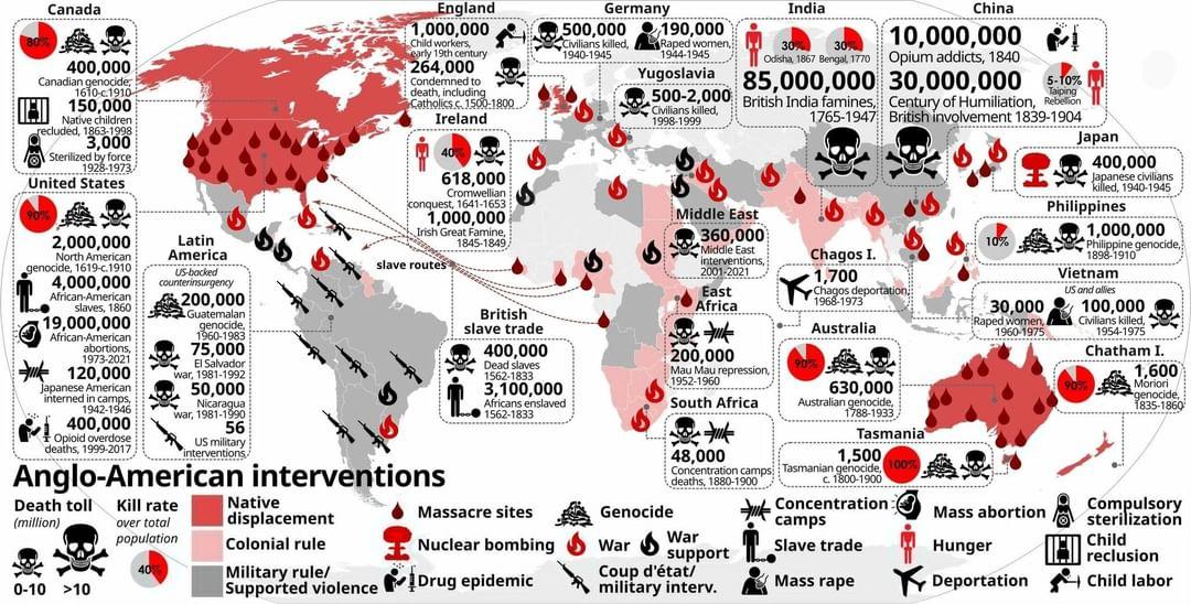 The Western powers have single-handedly ruined global cohesion with colonisation, trans-continental slavery, multiple world wars and genocides.