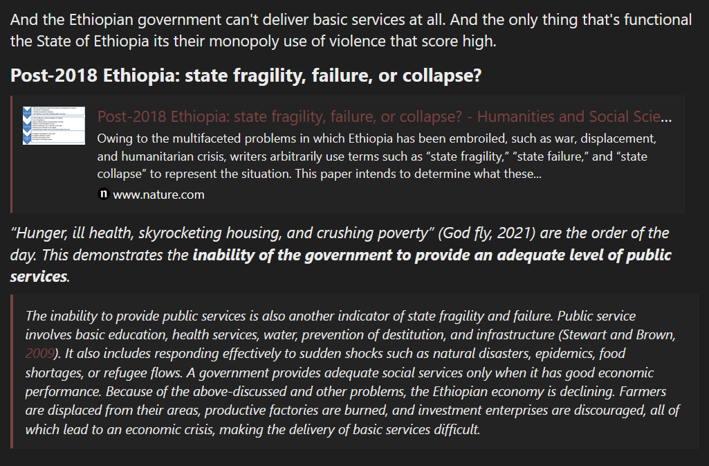 Also Ethiopia is poor , famished and lacking in resources since 2018 it's been showing signs of state collapse so there is questions if its even capable of thwarting those ambitions and if the government responds with human rights abuses , it will make it loose support internationally