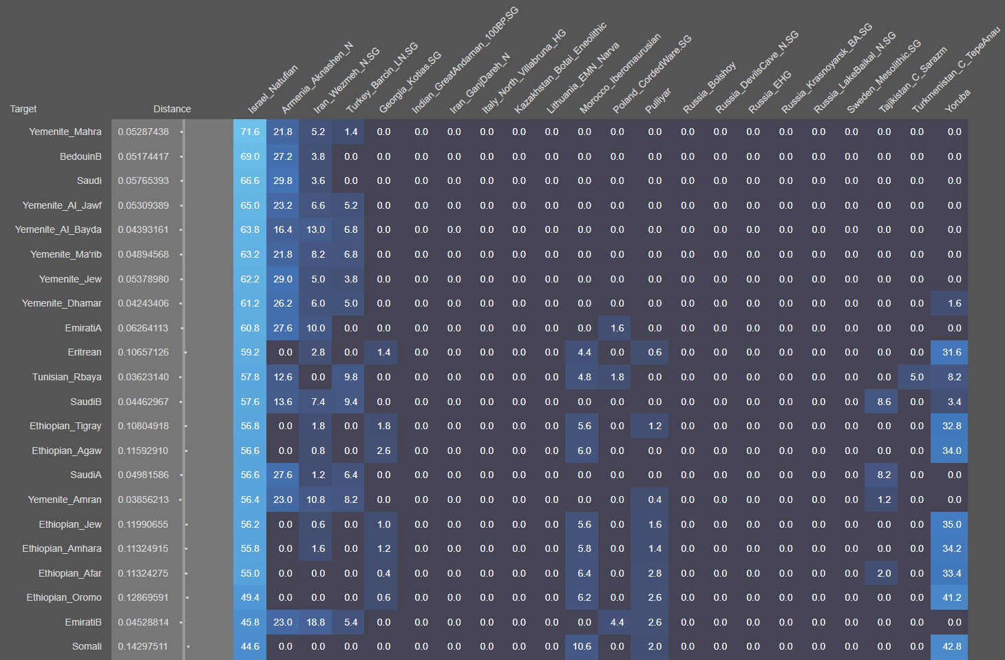The proxies you've chosen is really poor, it's misleading but Eritreans have high Eurasian admixture. They were connected to yeman during their empire especially the Axumite period. They have 25% Arabian compared to 3% for us somalis. So the question is, why are they 15% more eurasian than somalis when it should have been 25% because of their MENA dna.View attachment 300065