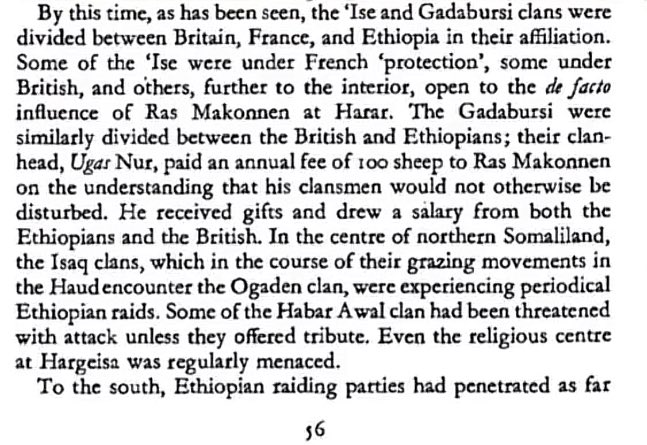 @Idilinaa I found some sources about the Abyssinians apparently taking tribute from Somalis in the 19th century. I know that Ugaas Nur rejected Ras Makonnen's offer to give tribute but I wanted to verify if any of this is true.