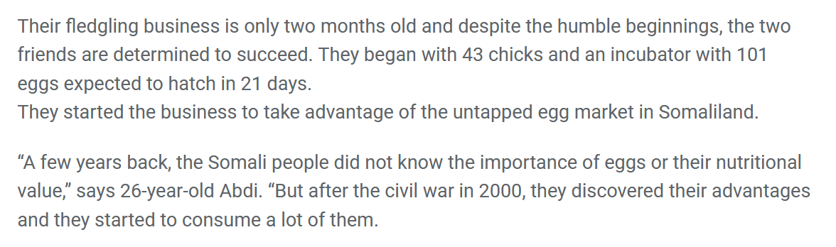 And you don’t even need to have capital upfront, there are ways to secure funding. You can reach out to people, local businesses, community banks, orgs, microfinance groups, or even Somali investment funds.