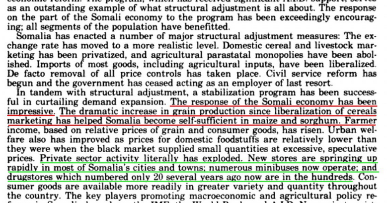 Somalia in the 80s saw real private sector growth, expanding markets, and increased agricultural output and I’ve already shared three separate sources confirming that.