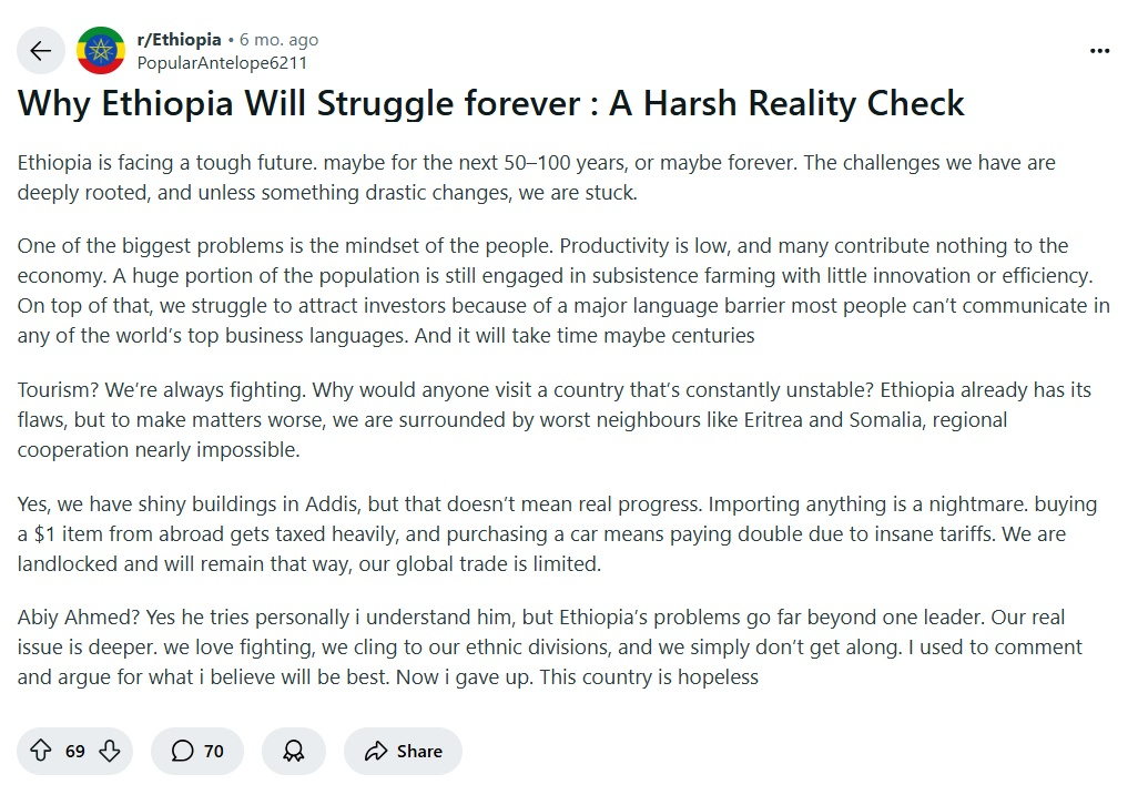 "We are surrounded by [the] worst neighbors like Eritrea and Somalia"@SpaceyCadet This alone should let you understand the state of their country