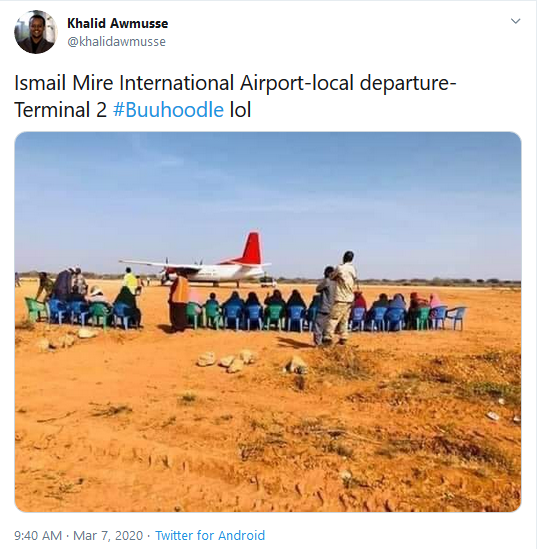 When the little room fills up,people have to wait their flight outside,Somalis exaggerate things Walahi, Kulahaa "International airport"
