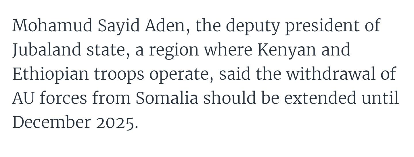 We are on our own now. Ain't no such a things as pre-mature, instead we have to be realistic and think about how FGS are meant to survive post-ATMIS with AS still maintaining a significant control of the country.