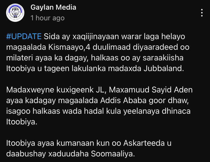 But then that would mean going against ethiopias interests, disrupting the status quo and bringing the federal states under the fgs. But ofc Jubba/Puntland cannot accept that so will hide under veiled criticisms against HSM