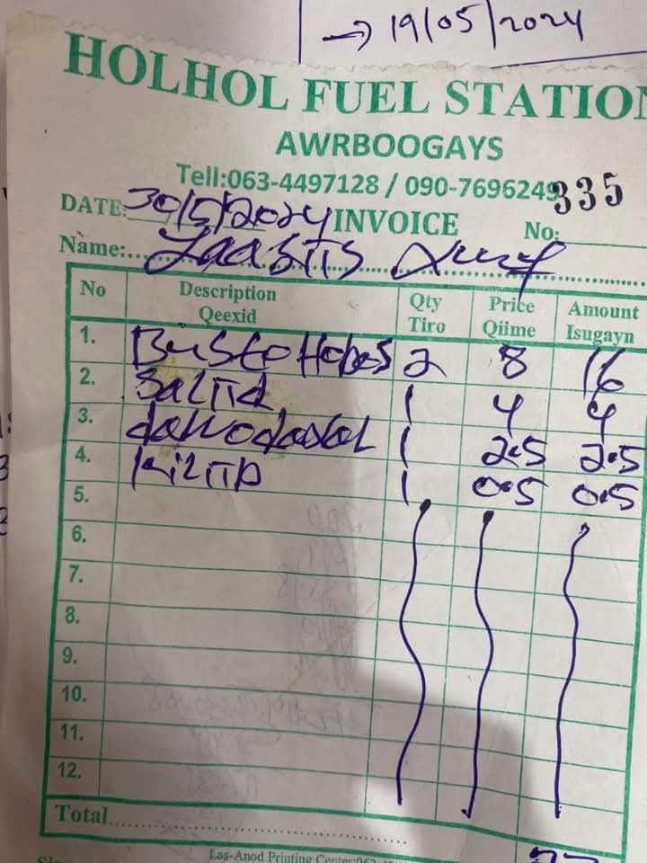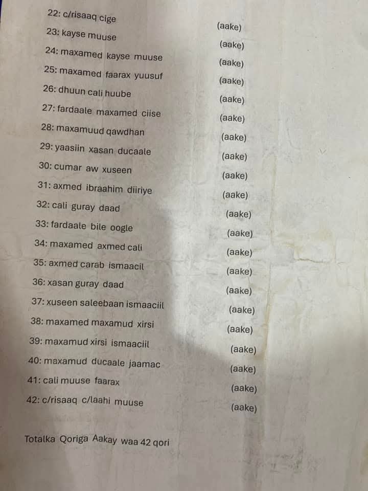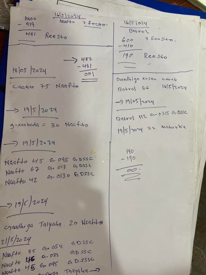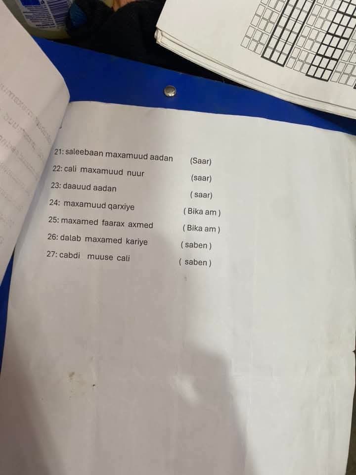 KHATUMO DOCUMENTS on fighters apprehended in Somaliland's Sanaag province have been made public. Documents reveal that it was a foreign force that attacked the city of Erigavo. Documents include names of fighters, payroll information, weapons assigned to them. Food and fuel purchases.