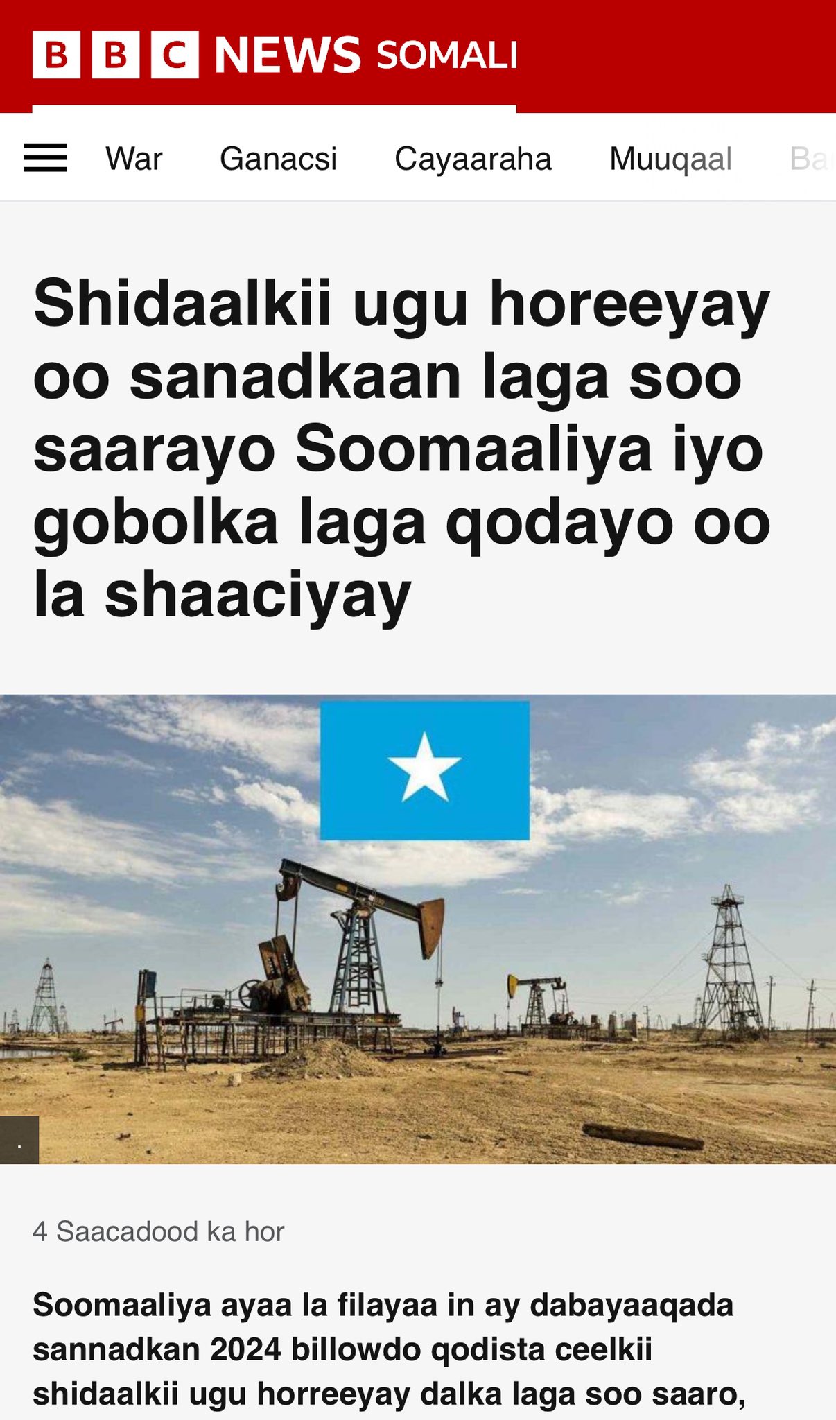Shidaalkii ugu horeeyay oo sanadkaan laga soo saarayo Soomaaliya iyo gobolka laga qodayo oo la shaaciyay - BBC News Somali