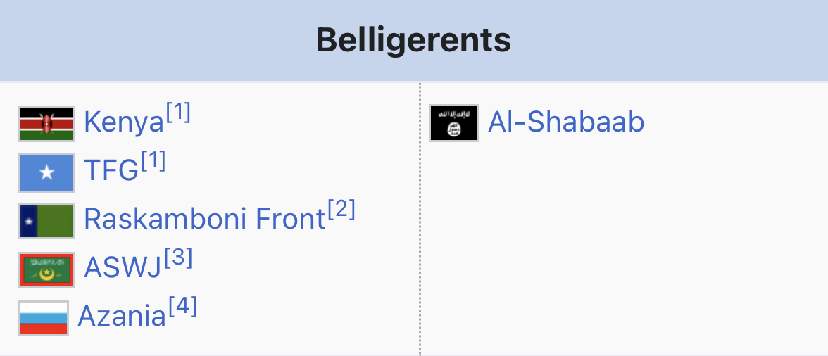 Operation Linda Nchi where Kenya entered Somalia was in 2011 and here are the belligerents. Is Hawiye represented by AS?