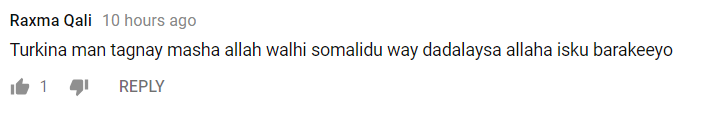 Translation: Have we gone to Turkey? Mashallah, wallahi the Somali nation are prospering.