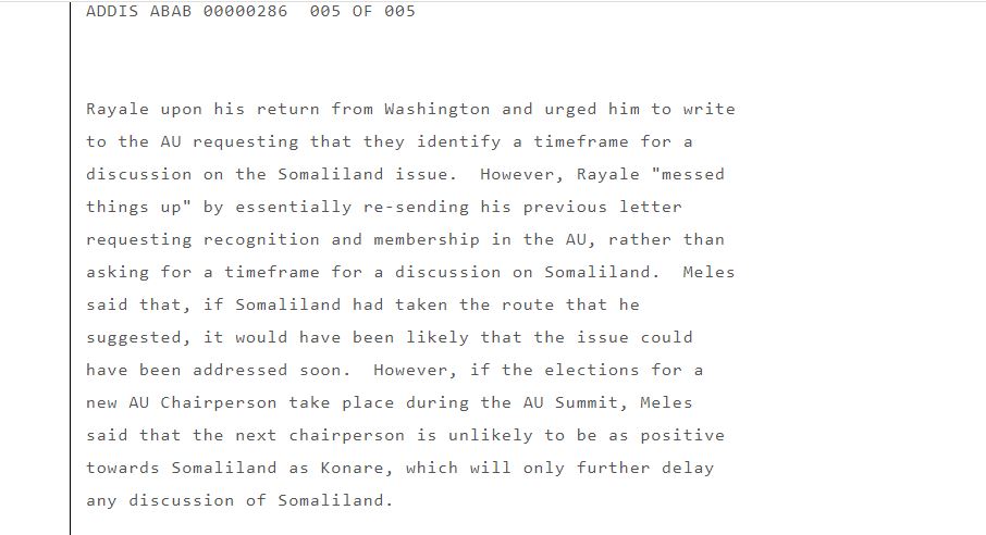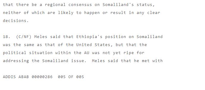 According to Wikileaks Ethiopia tried to advice Somaliland getting its case reviewd by African Union and possibly given an observer role in mid 2000s