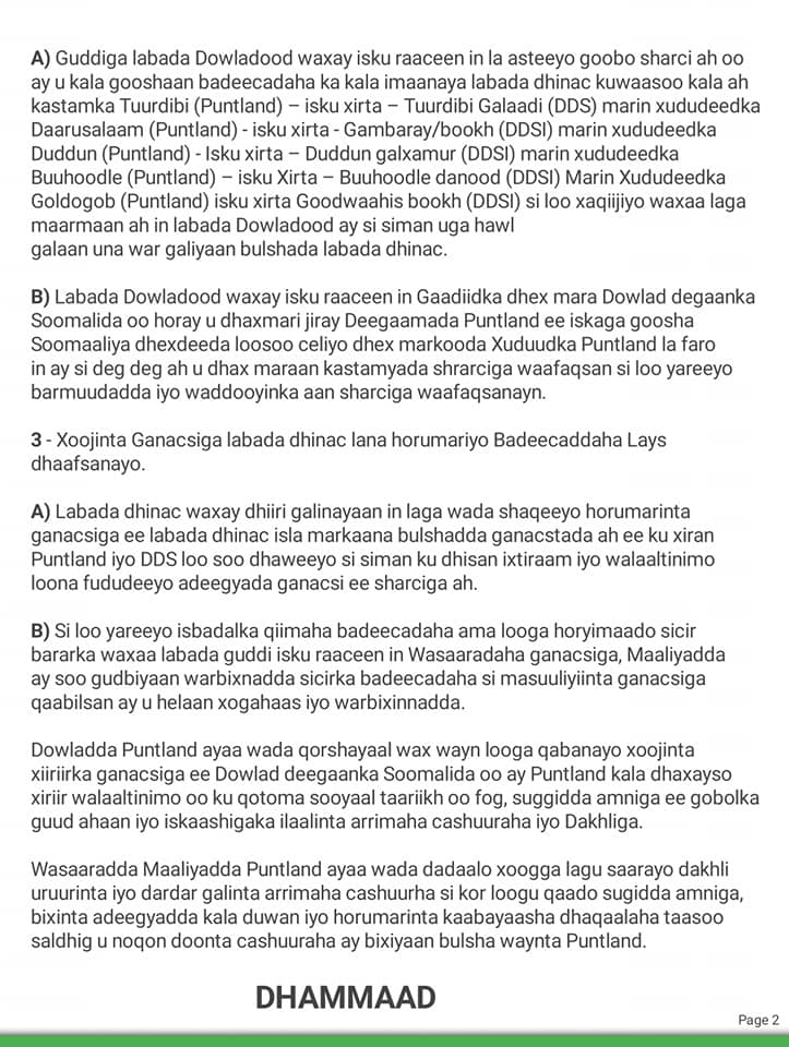 (1) NEWS - PL & DDS border and commercial agreement | Somali Spot | Forum, News, VideosLeaders of DDSI regions of Bookh, Galxamuur, Galaadi, Danoot held a meeting with Puntland to strengthen relations, in regards to security and economic development. These meetings will be held regularly, every three months.