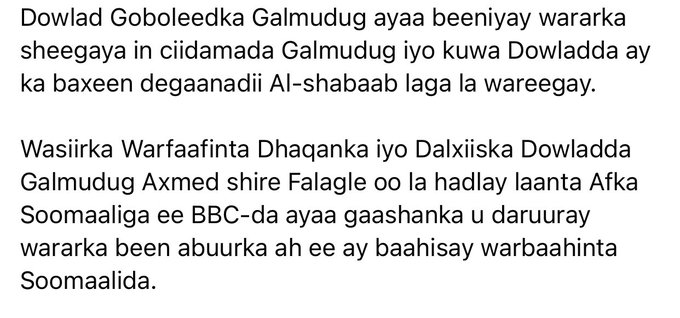 BTW Gen Biixi got chased out yesterday because no one trusted him.Unfortunately we had misinformation spread by the bun community. I always said that this community supports Al-shabab in their attacks all over Somalia especially communities they see as their enemies be it reer Kismayo, Mogadishu and now reer Galmudug.