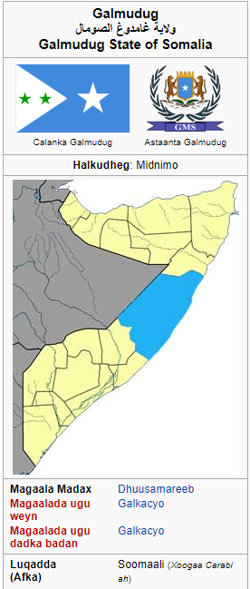 Galmudugs is state of 146,000 km2 with a borders well known, a border that starts from Hiiraan and S/Dhexe regions all the way up to the border of Nugaal.