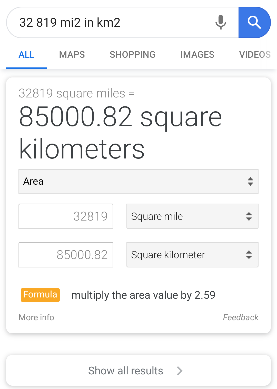 Gedo at best (rounded up) is 50,000 km2 you can calculate it yourself hereYou don't have permission to view the spoiler content. Log in or register now.