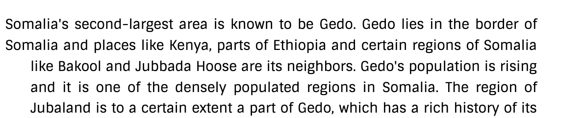 Gedo total area sq is 32,000 SQ KM. Even though it's wikipedia article says 85,000 SQ KM, it's garbage. I measured it and u can also if u so wish. 85,000 SQ KM is nearly 15% of Somalia and that's clearly not the case in Gedo kkkk when PL(sool-sanag-bari-nugal-north mudug) are only 30% how in the world did gedo become half PL land mass? kkkkk war wuxu ma xishoodan miyaa, clearly more 'cadifad' sade posting on wiki lies because that's all cadifad can create is lies not knowledge.