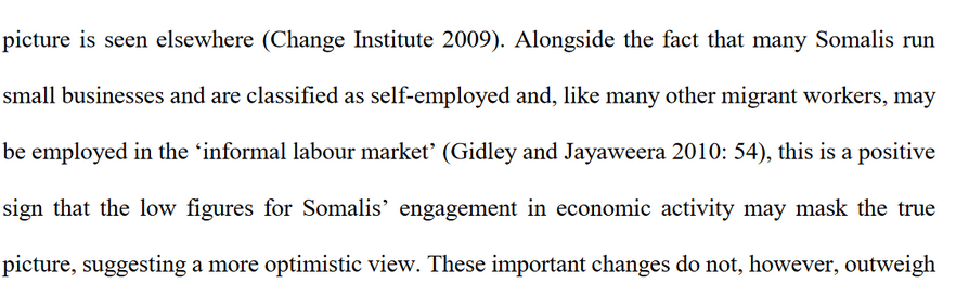 A similar pattern has been observed among Somali immigrants in the UK, where self-employment and informal labor markets mask the true economic picture.