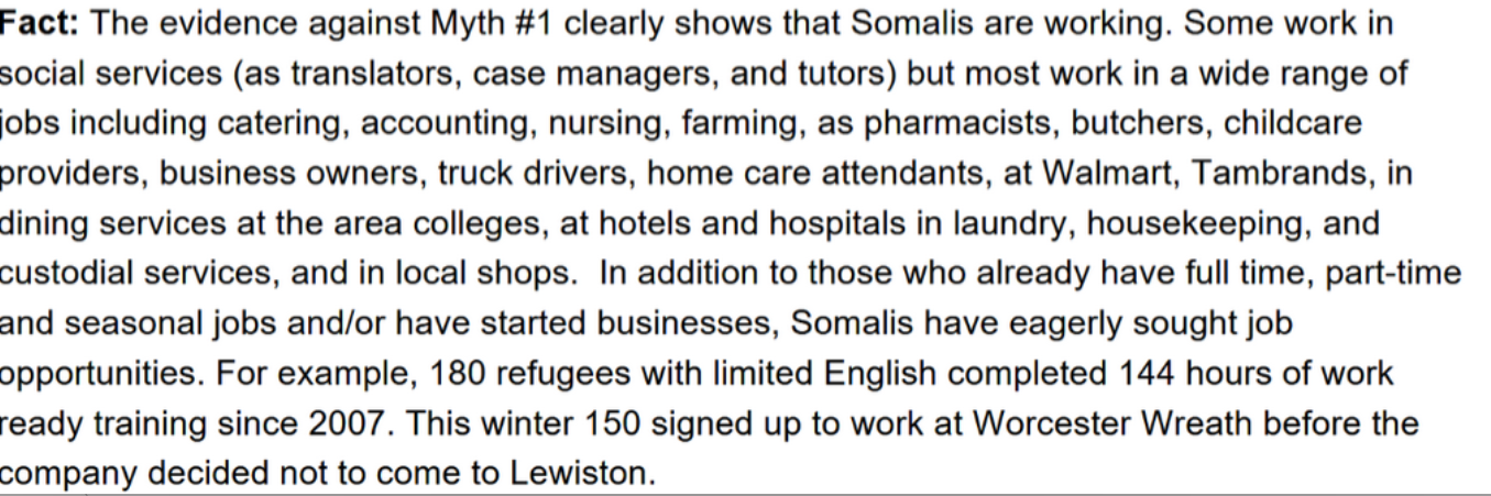 In fact, the counties with the highest concentration of Somalis also have the highest employment and self-support rates, because they create opportunities and hire from within their own communities.