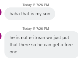 What did he reply with. This is great move. Would love to know the type of T some of these Eritreans carry. They could be closely associated with yours