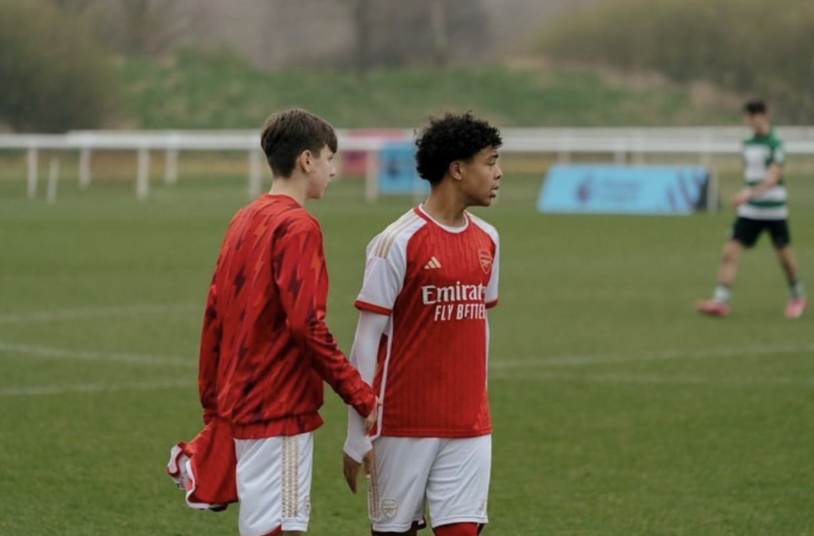 He was on the bench for Arsenal U18s at 15 this weekend and he even got to train with the first team (!!!!!!!) earlier this week.