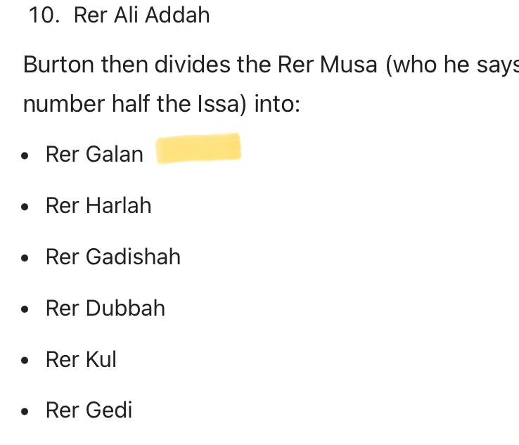 Aren't Nole Oromo I know a few Oromo Nole very interesting I also heard in the Ala Oromo if Afran Qallo which is the biggest have a reer called reer Galan who are very large in numbers I think the largest Among the Ala but the thing is Issa also have a Reer galan sub clan who are very big themselves