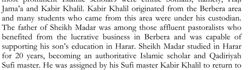 I will clarify though Amir Nur was Marehan Darod. Imam Ahmad was a Harari. As for Shaykh Abadir he was an Arab his lineage going back to Abu Bakr. He was not Darod.