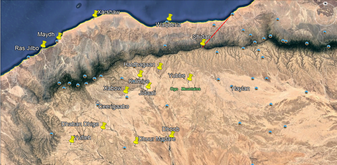 Warsangali border ends at Yubbe and HY lives in villages near Yubbe such as Haldhagaan, Caduur and others. Plus they also own villages south of Jidaali such as Dhoob & Dhuur Madare.