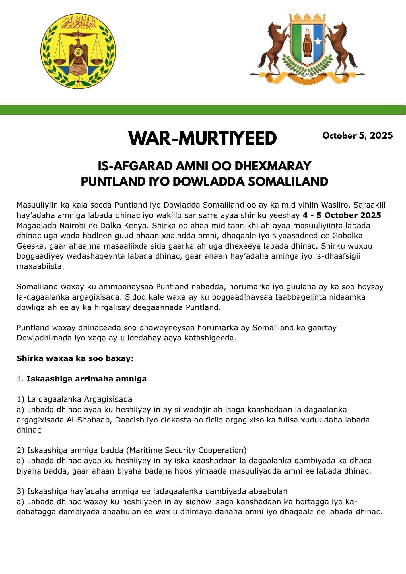 Reports circulating on various media channels, including some statements purportedly from Puntland figures, suggest that Puntland may have publicly affirmed Somaliland’s right to self-determination to gain independence . If such declarations are indeed authentic, they represent a profound shift. For Puntland, such a move could be strategically advantageous by recognising Somaliland’s position, it effectively removes itself from the contentious Laascaanood dispute, undercutting Mogadishu’s influence there and allowing Puntland to redirect its focus toward internal security concerns namely the threats posed by ISIS dacish, alkabaab, and the volatile situation in Galmudug.