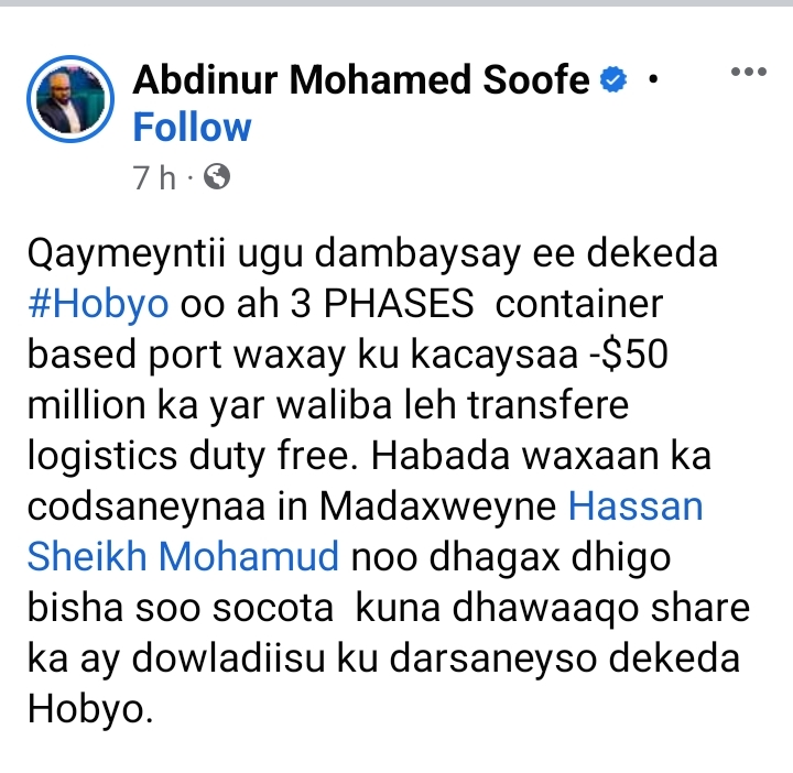 A lot of progress is being made since Hobyo administration was built and agreed between Sacad and Saleebaan.