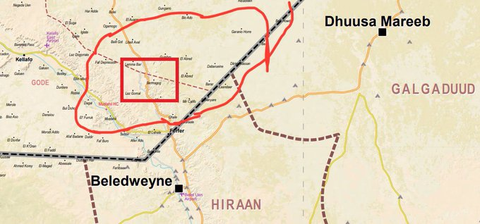 This red circle is where HGs reside, it's where the HG and Udujeen alliance who both are Bah Caasho (same Hooyo), and Lababar is HG headquarters and Las Gomal and Baarmagoog is HG/Udujeen .