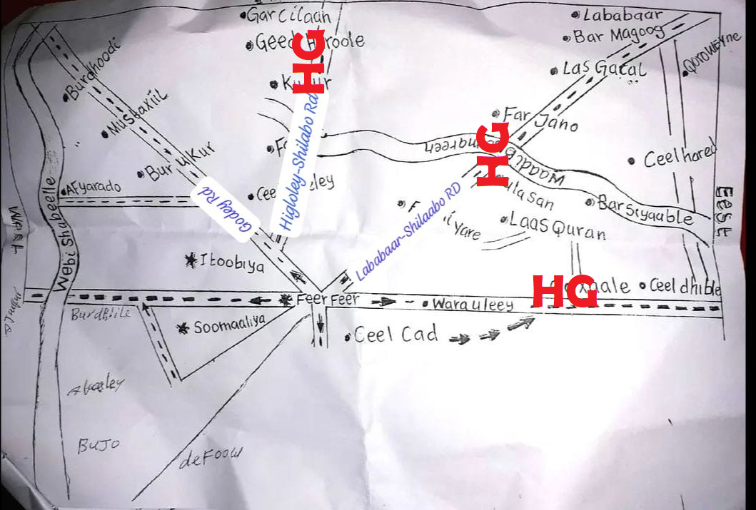 This red circle is where HGs and Udujeen reside we are both Bah Caasho (same Hooyo), and Lababar is HG headquarters and Las Gomal and Baarmagoog is HG/Udujeen .