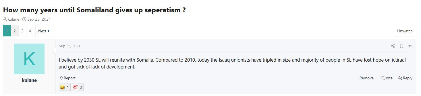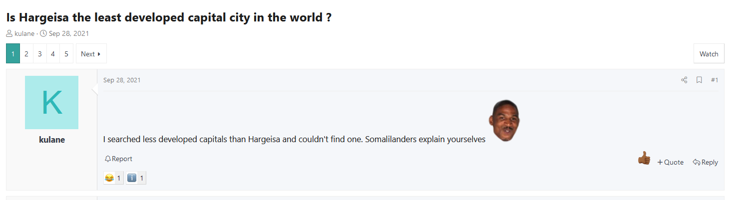 OP has less than 74 messages and has already made 4 useless threads within the last 6 weeks on Somaliland. Is Somaliland that much on your mind?