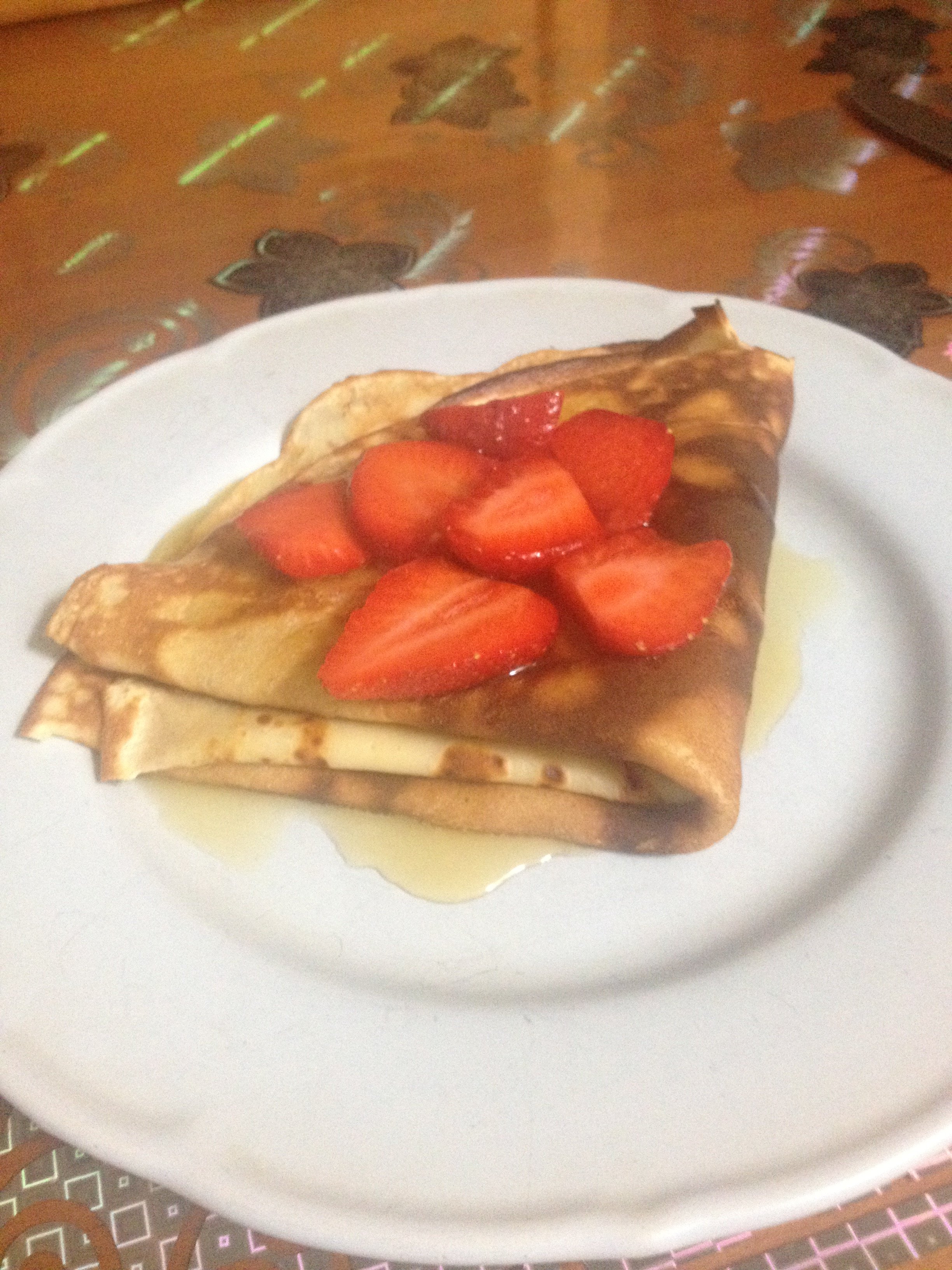 For breakfast pancakes with strawberries drizzled with agave syrup