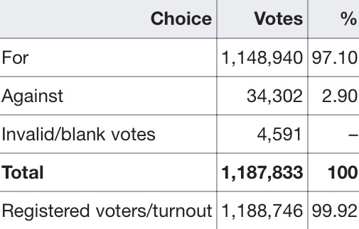Only 1 mill voters and this was a bias referendum. It wasn't taken in Eastern Sanaag.Also this violates the Somali constitution so it was an illegal referendum.