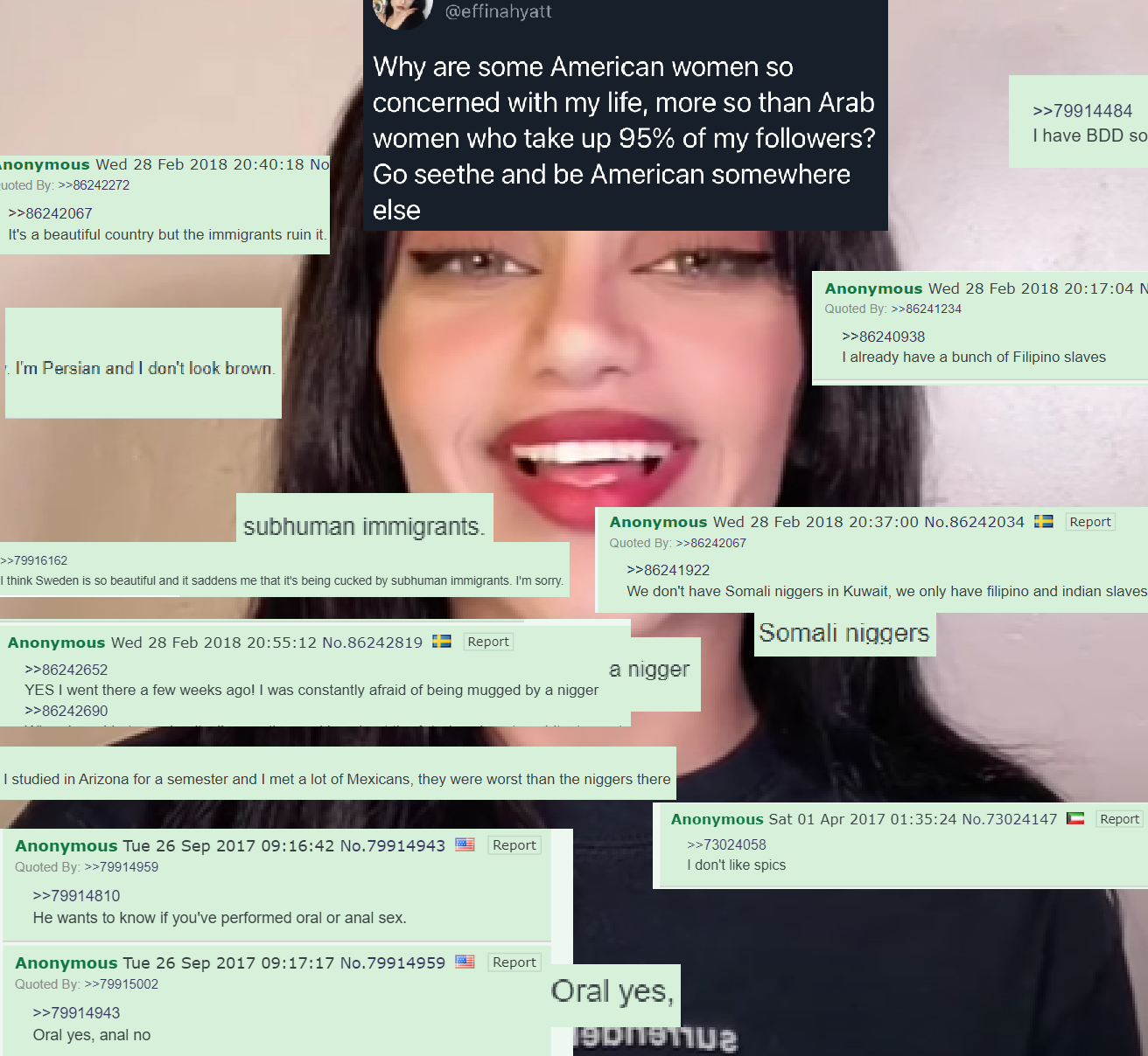 @soulmates @Reformedlaais look at this gulfie creature trying to speak about us 😭 I genuinely thought she was mtf at first. She got her karma tho her husband’s racist fans constantly mock her appearance and the appearance of their children while he remains silent (he knows his fans are correct). Arabs don’t claim her because she’s ugly when in reality she looks arab asf 😭 100% gulfie. She looks like a racist caricature…just hideous