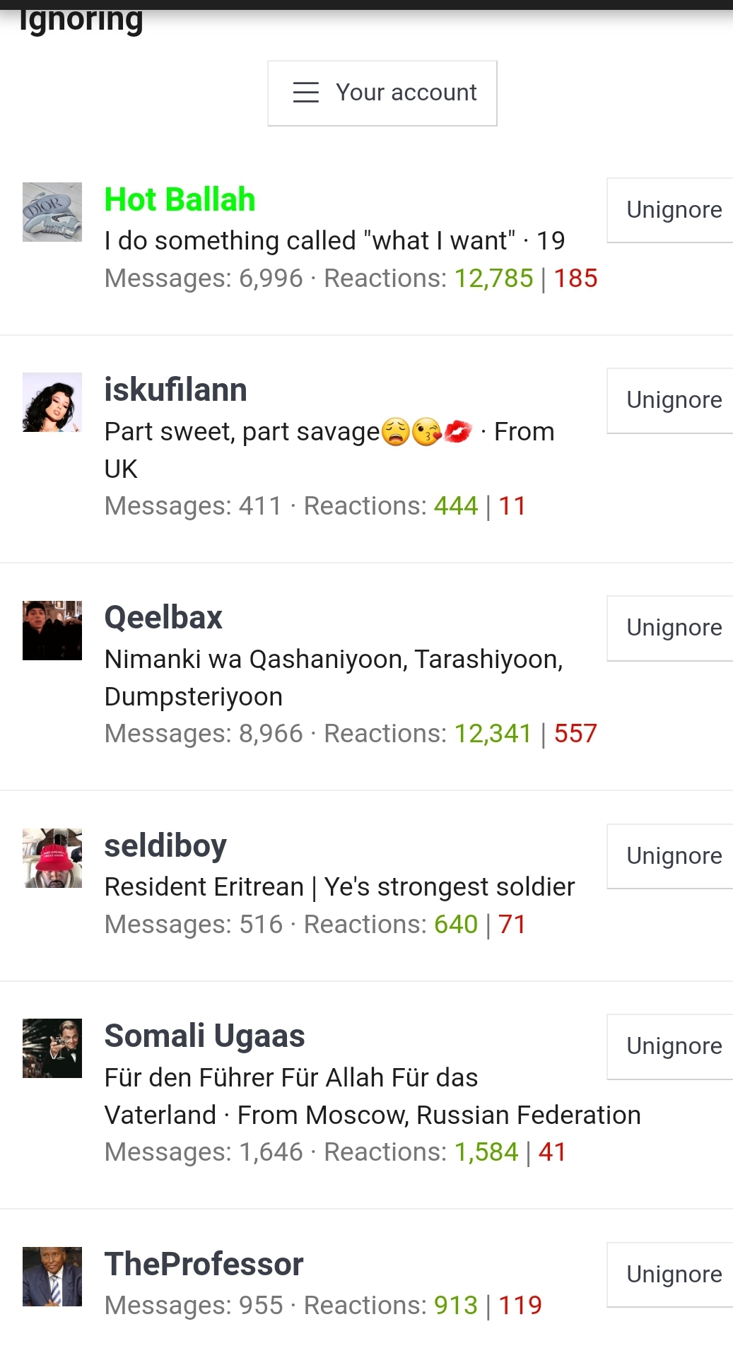 Lool who says I'm older than @Sophisticate we are probably both around the same age.. And no I don't participate in gender wars just give my opinion from time to time.. Anyway why are you always randomly trashing my comments all over the forum :noneck::noneck: