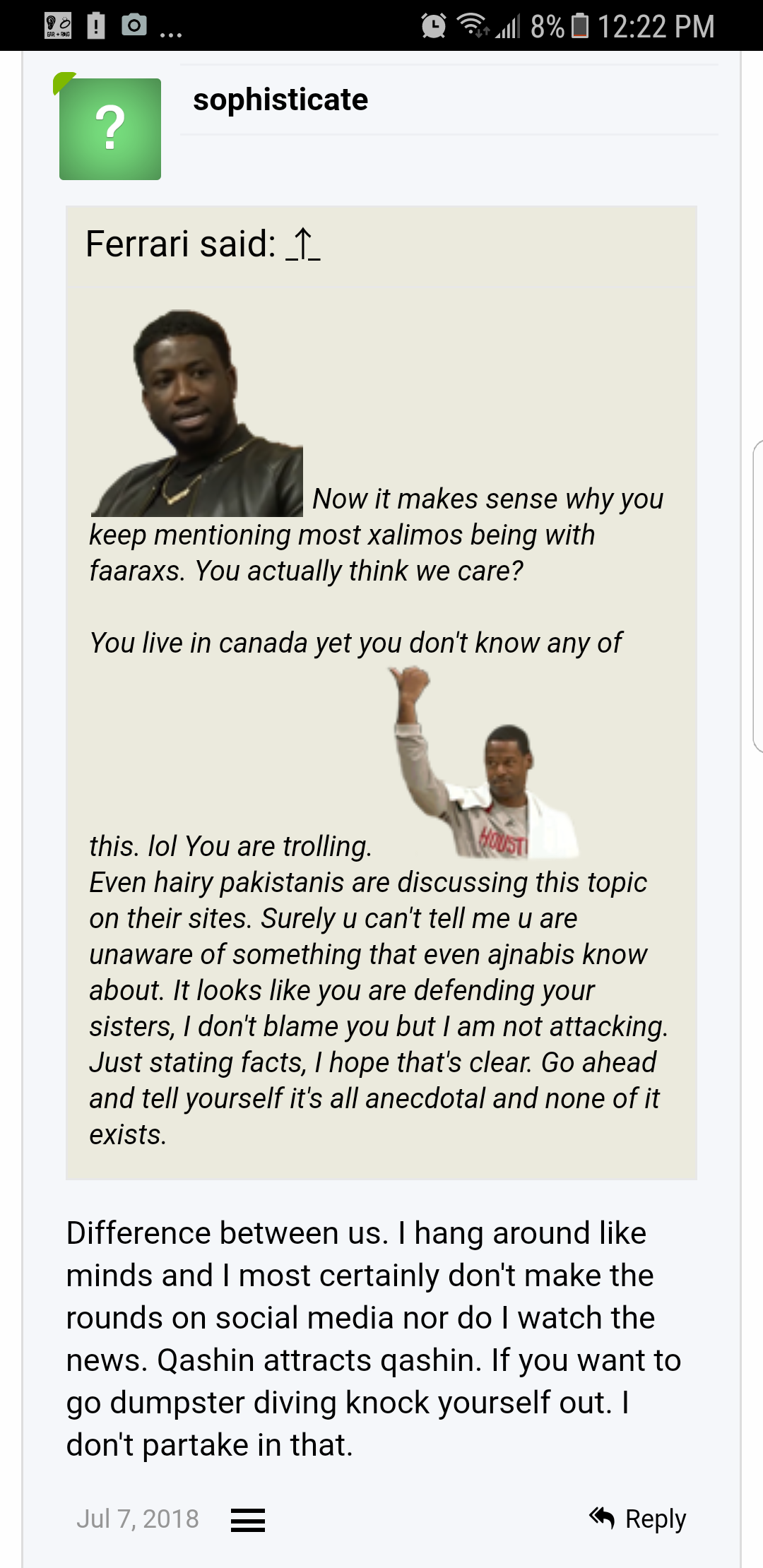 Ninyahow, I didn't call you qashin even though you downvoted my post. I like to focus on Xalimos that are relatable. Trust me, I see things in public that are unpleasant to the eye but I change my line of sight and don't dwell on it. If I heavily disapprove of something I won't circulate it nor talk about it much.