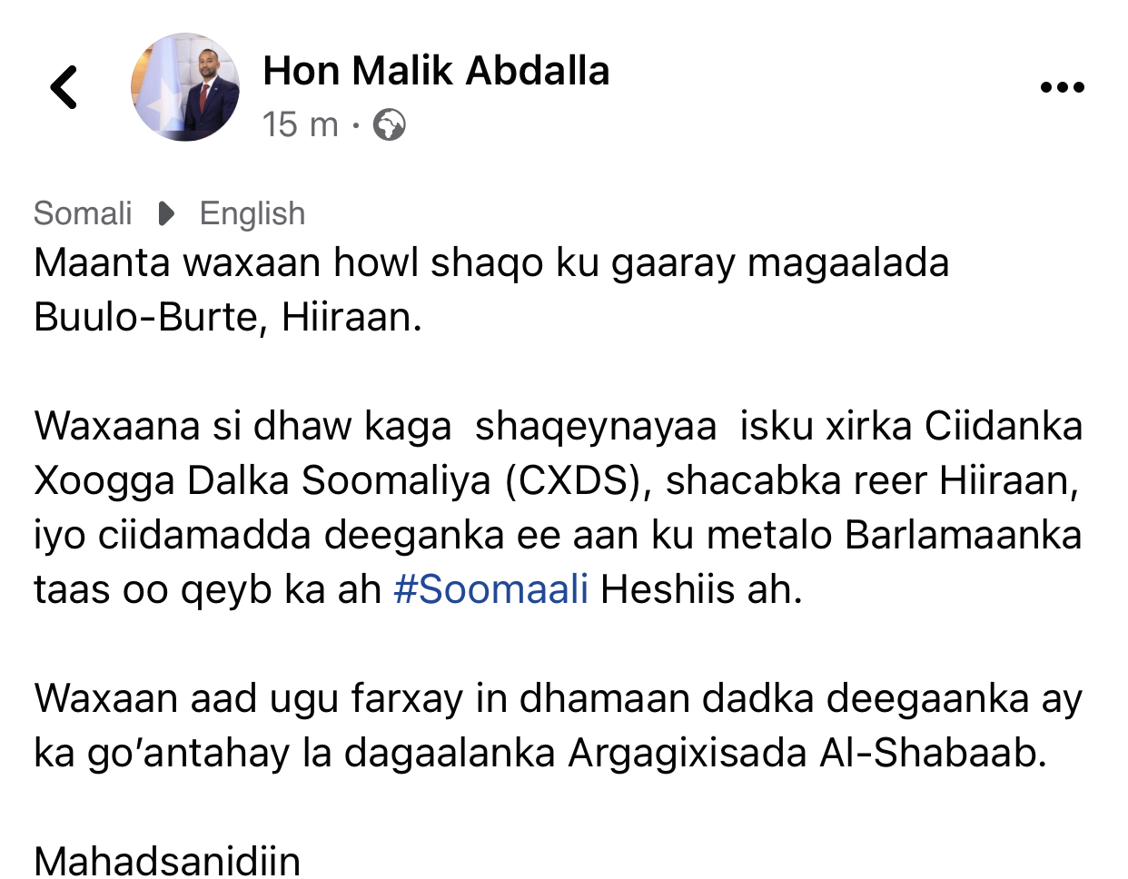 do you want me to post Habaraji and xawaadle taking mag from each other not just once but many times? mida kale you barely know whats going on in the deegaan and how people live Ayaanle and Cali madaxweyne have no xaduud not a single deegaan your border as cali madaxweyne is fully habaraji from beergadiid thats 35 Km from Beledweyne up until bukure thats 15KM south of maxaas town. Unless Cali madaxweyne stretch into ethiopia with agoon then they might have a border from feerfeer till Qalaafo. ive got countless posts of Ceyr and XL fighting in the district and its not the borders its deep in the district murursade are barely around anymore. Maxaas could well be majority ceyr in terms of deegano and even the recent howlgal to maxaas was spearheaded by Cali jeyte and guddomiyaha degmada matabaan bashiir cabdiraxman who completely removed alshabaab from all ceyr deegaano from matabaan to Maxaas which Guudlaawe later came to laud. We support our Xawaadle brothers in their strife against shabaab but home affairs waa kow iyo labo.