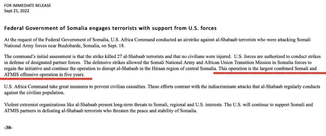 SNA credited some air support from them some so probably helicopter cover. Haven’t seen any troop movements howeverDid so called ATMIS actually been involved in these operations?