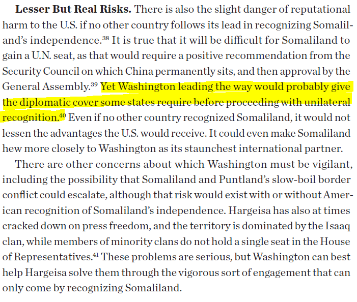 But recongition carries risks for the first country so really they have to have interest in Somaliland more than others. You saw how they went at Ethiopia for putting forward the idea. Plus they have to use their connections to get SL more recongition. It's a lot of effort for a country that wants to remain neutral.