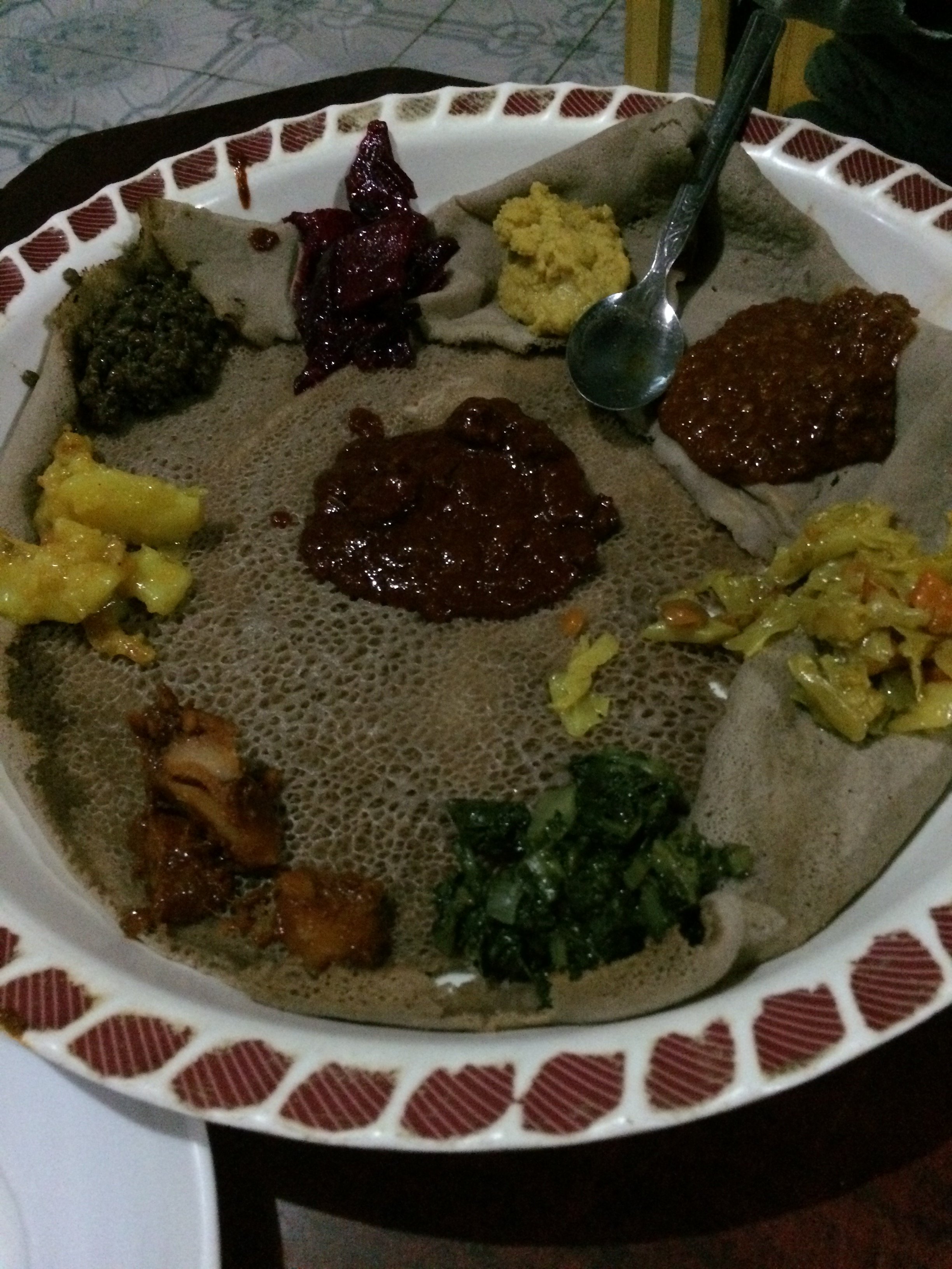 There "injera" is nasty as hell. I will take anjeero any day. There shit was way to think, felt like i was eating carpet And it was cold.